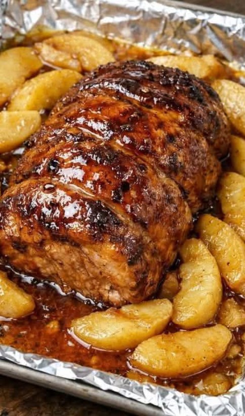 • Visuals: Serve the roast whole on the tray, surrounded by the caramelized apples and the rich, dark pan juices.