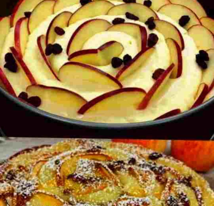 This tasty Apple Cream Cake is fluffy, moist, and has a creamy filling, topped with apples and raisins. This cake is great for any event and will amaze your loved ones. Let’s begin!