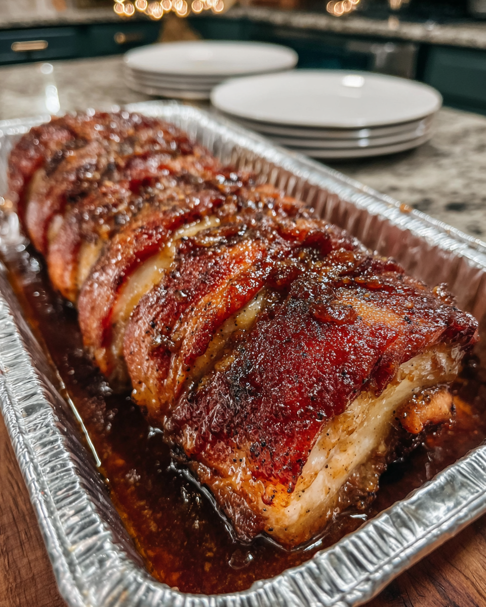 A mouthwatering dish that combines the savory richness of bacon with the sweet caramelization of brown sugar, creating a harmonious blend of flavors that is perfect for family gatherings or cozy dinners.