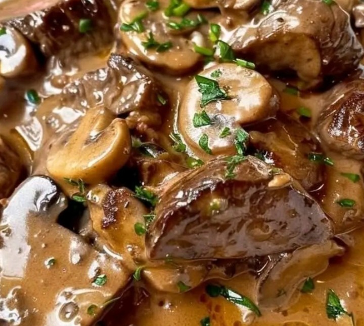 Ce plat riche et onctueux se distingue par ses morceaux de bœuf tendre, cuits dans une sauce crémeuse aux champignons et relevée par une touche de paprika.