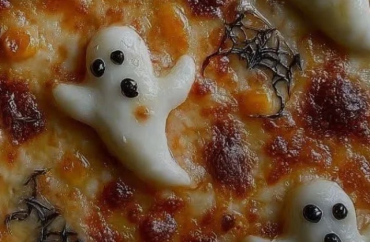 Recipe Introduction: This Halloween, bring spooky fun to your dinner table with this Ghost Pizza! Featuring ghost-shaped mozzarella cheese and spider web details, it’s a creative and delicious treat for the whole family. Perfect for Halloween parties or a fun, themed dinner.