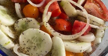 Marinated Cucumber, Tomato, and Onion Salad is a refreshing summer side dish that comes together in less than 5 minutes…