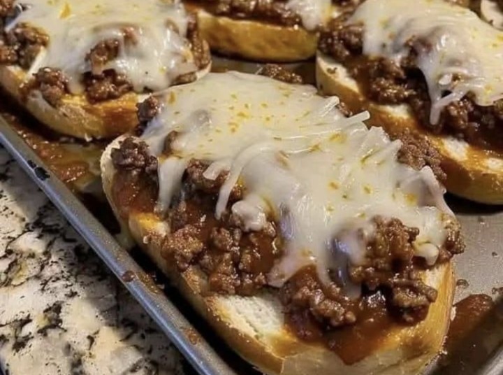 5. Assemble the sandwiches: Spoon the sloppy joe mixture generously onto the toasted bread slices. Sprinkle with shredded mozzarella cheese.