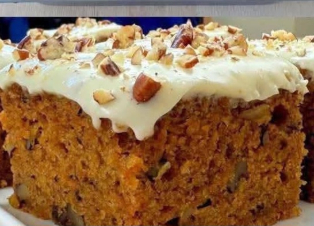 Slice the cake into squares or rectangles and serve. Enjoy the rich, moist carrot cake with its smooth, tangy cream cheese frosting!