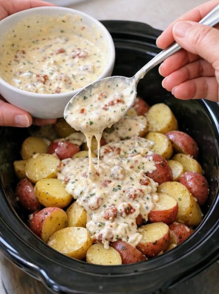 🥔 Creamy Ranch Bacon Slow Cooker Potatoes