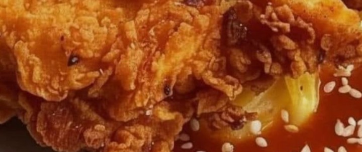 This dish looks like extra-crispy fried chicken breast served over creamy noodles with a sweet-savory glaze (Asian-inspired). Here’s a restaurant-style recipe to match the photo