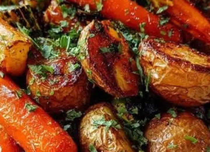 Crispy Garlic Herb Roasted Potatoes, Carrots and Zucchini