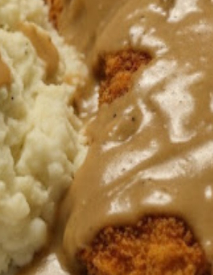 This dish looks like a crispy breaded schnitzel with creamy mashed potatoes and brown gravy. Here’s a full, easy restaurant-style recipe you can follow at home: