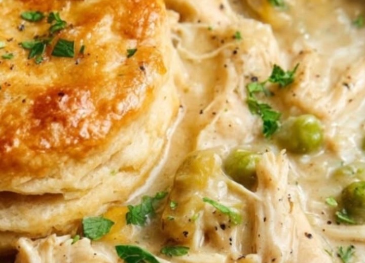 Crock Pot Chicken Pot PieIngredients:2 lbs boneless, skinless chicken breasts or thighs1 medium onion, diced3 medium carrots, sliced3 medium potatoes, peeled and diced2 cups frozen peas (add near the end)2 cups chicken broth1 can (10.5 oz) cream of chicken soup (or cream of mushroom)2 cloves garlic, minced1 tsp dried thyme (or 1 Tbsp fresh)1 tsp dried parsley½ tsp paprikaSalt & pepper, to taste1 cup heavy cream (or half-and-half)1 Tbsp cornstarch + 2 Tbsp water (for thickening, optional)For topping:1 can refrigerated biscuits or 1 sheet puff pastry (baked separately)Instructions:Prepare the base:Place chicken, onion, carrots, and potatoes into the crock pot.Add liquids & seasonings:Stir in chicken broth, cream of chicken soup, garlic, thyme, parsley, paprika, salt, and pepper.Slow cook:Cook on LOW for 6–7 hours or HIGH for 3–4 hours, until chicken is tender and vegetables are soft.Shred chicken:Remove chicken, shred with two forks, and return it to the crock pot.Add peas & cream:Stir in frozen peas and heavy cream. If you want it thicker, mix cornstarch + water and stir in. Let cook another 20–30 minutes until peas are heated and sauce thickens.Bake topping:If using biscuits: bake them in the oven according to package directions.If using puff pastry: bake until golden brown.Serve:Spoon chicken filling into bowls and top with a warm biscuit or puff pastry square.