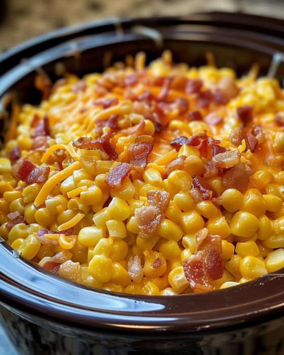 How To Make Slow Cooker Creamy Cheddar Corn with Bacon:
