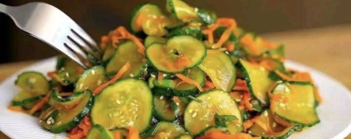 4. Combine the Salad: Pour the dressing over the cucumber, carrot, and green onion mixture. Toss everything together until the vegetables are well coated in the dressing.