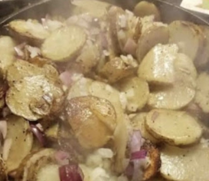 Fried Potato With OnionINGREDIENTS3-4 large potatoes1 onion slicedoil for fryinggreen onion garnishsalt and pepper to tasteINSTRUCTIONSStep 1.Peel and thinly slice the potatoes about ⅛”-¼” thick.Step 2.Heat the oil in a seasoned fry pan or non-stick pan. Carefully add the potatoes into the hot oil. Keep uncovered.Step 3.Fry potatoes until crispy about 20-25 minutes. Do not rapidly stir potatoes, but carefully flip them, try to keep them intact, and not mushy.Step 4.Just before the potatoes are starting to crisp up, add the sliced onions to the potatoes and continue to cook for the final 5 minutes.Step 5.Add salt and pepper and a garnish of green onions carefully as you try to mix the seasoning together, but keep potatoes as intact as you can.Step 6.Garnish with green onions, serve with ketchup and enjoy!