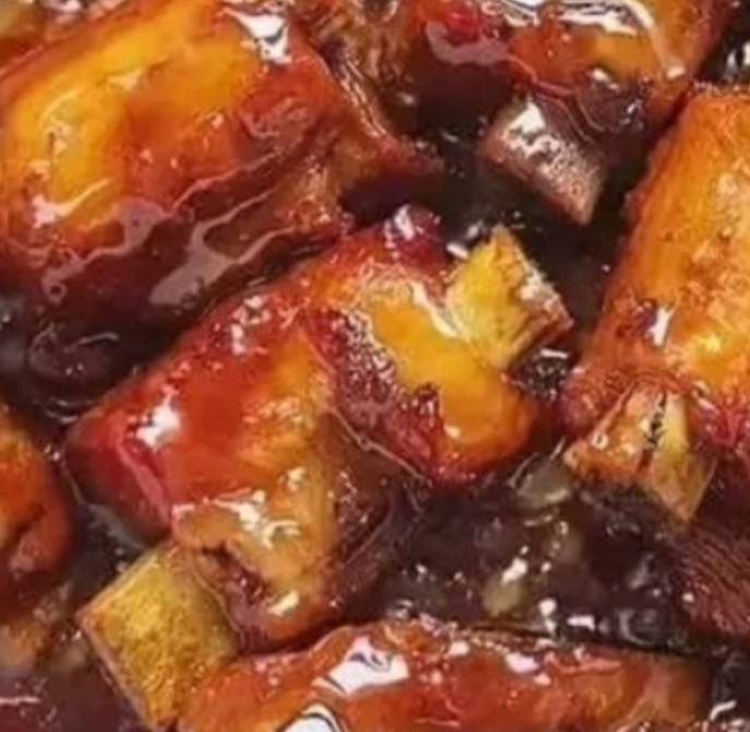 4. Caramelize: Add water to the pan, lower the heat, and let it simmer. Stir occasionally until the sauce thickens and the ribs are well-coated in a caramelized glaze.