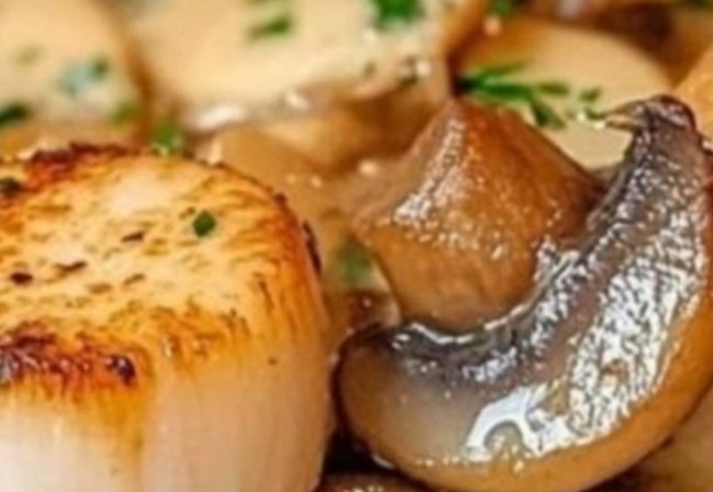 2. ✅ Add shrimp and scallops, cook 2–3 minutes until lightly golden.