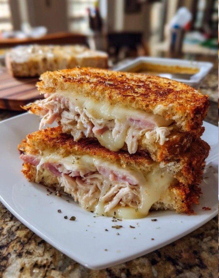 This grilled chicken and ham sandwich is the perfect combination of flavors, with tender chicken, savory ham, and melted cheese all nestled between two crispy, golden slices of bread. It’s a quick, satisfying meal for lunch or dinner, ideal for those craving comfort food.