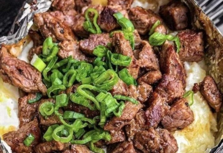 Place a generous serving of the garlic-butter steak bites on top of each loaded baked potato. Garnish with additional parsley and a pinch of salt and pepper if desired.