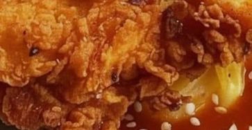 This dish looks like extra-crispy fried chicken breast served over creamy noodles with a sweet-savory glaze (Asian-inspired). Here’s a restaurant-style…