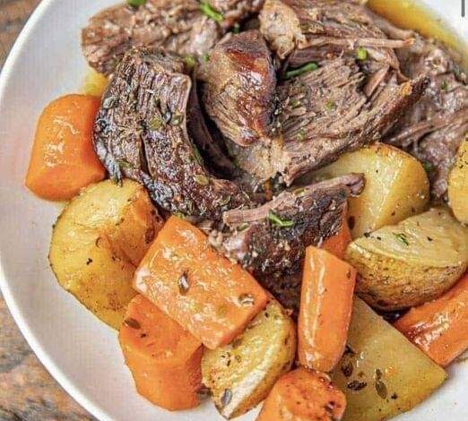 Enjoy this delectable pot roast with perfectly seasoned vegetables for a hearty meal!