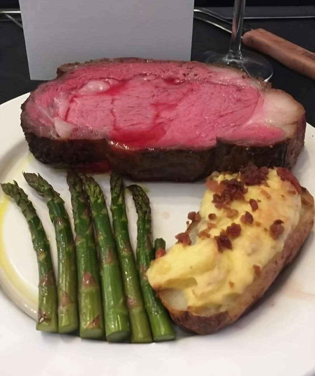 First thought? Wow… that’s juicy. Perfectly rosy in the center, rich, tender, and clearly cooked with confidence—this is the kind of prime rib that makes people go quiet at the table. Classic, indulgent, and absolutely worth slowing down for.