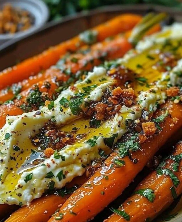 Ingredients:1 lb baby carrots, peeled2 tablespoons olive oilSalt and pepper to taste1/2 cup ricotta cheese1 tablespoon honey1 teaspoon hot sauce (adjust to taste)Fresh parsley for garnish (optional)Instructions:Preheat the oven to 400°F (200°C). ???? (10 minutes)Toss the peeled baby carrots with olive oil, salt, and pepper. ???? (2 minutes)Spread the carrots in a single layer on a baking sheet. ????️ (1 minute)Roast the carrots in the oven for 25-30 minutes, or until tender and slightly caramelized, stirring halfway through. ⏲️ (25-30 minutes)While the carrots roast, whip the ricotta cheese until smooth and creamy. ???? (5 minutes)In a small bowl, combine honey and hot sauce, then warm it slightly in the microwave or on the stove. ????️ (3 minutes)Once the carrots are done, remove them from the oven and transfer to a serving plate. ✨ (2 minutes)Spoon the whipped ricotta over the roasted carrots, then drizzle with the hot honey mixture. ???? (3 minutes)Garnish with fresh parsley, if desired. ???? (1 minute)Prep Time: 10 minutes | Cooking Time: 30 minutes | Total Time: 40 minutesKcal: 180 kcal per serving | Servings: 4 servings