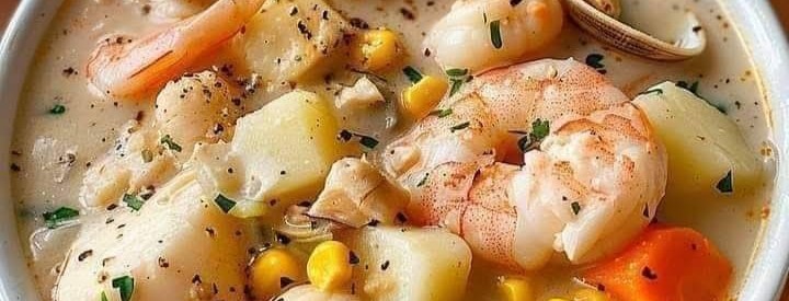 In a large pot, melt the butter over medium heat. Add the diced onion and cook until translucent, about 5 minutes.Stir in the Old Bay seasoning and thyme. Sprinkle in the flour and cook for 1-2 minutes to form a roux.Add the celery, carrot, potatoes, and corn to the pot. Pour in the seafood or chicken broth and white grape juice, stirring well to combine.Bring the mixture to a boil, then reduce the heat and let it simmer for 15-20 minutes, or until the vegetables are tender.Add the white fish, scallops, shrimp, and clams to the pot. Simmer for another 5-7 minutes, or until the seafood is cooked through.Stir in the heavy cream and let the chowder simmer for an additional 5 minutes, allowing the flavors to meld together.Season with salt and pepper to taste. Garnish with chopped parsley before serving.