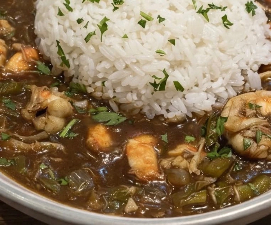 Shrimp-Crabmeat and Okra Gumbo… This yummy gumbo is a cozy Southern stew packed with juicy shrimp, sweet crabmeat, and crunchy okra. It bubbles with tasty spices, veggies, and a rich gravy. Perfect for family dinners! Cook it up hot, spoon it over fluffy rice, and sprinkle parsley for a fresh kick. Super easy and full of flavor!