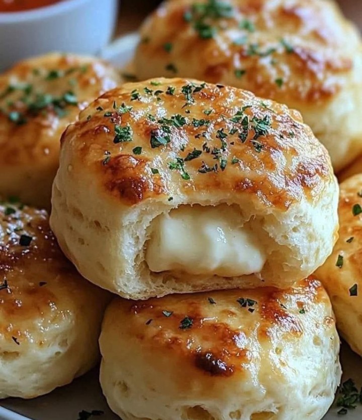Place a cube of mozzarella cheese in the center of each dough piece. Fold the edges around the cheese and pinch to seal completely, forming a ball.