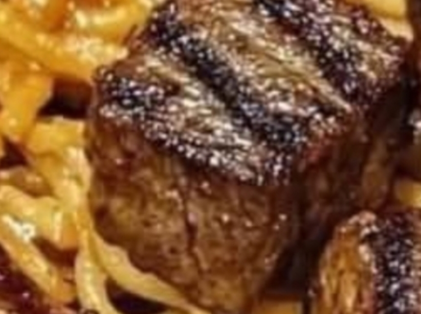 – Plate the creamy spaghetti and top with sizzling garlic butter steak bites.