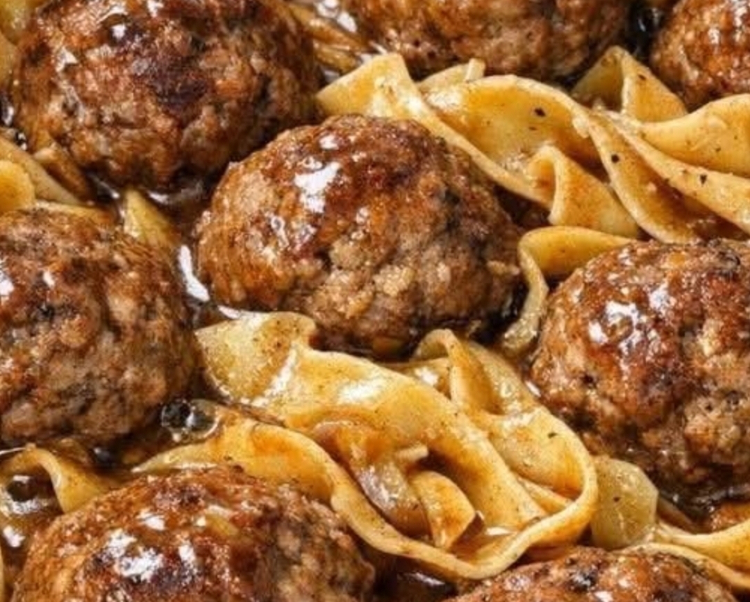Slow-Cooked Meatball Stroganoff with Noodles is a rich, comforting dish made with tender meatballs simmered slowly in a savory mushroom and beef gravy. The slow cooker allows the flavors to develop beautifully while keeping the meatballs juicy and soft. Served over warm egg noodles, this dish delivers creamy, hearty comfort food that is perfect for family dinners, cozy weekends, or easy meal prep.