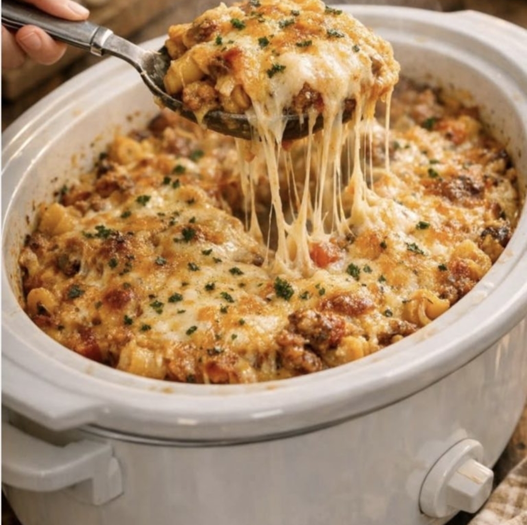 Pro Tip: If you want that golden-brown crust on the cheese like in your photo, you can carefully pop the removable ceramic insert into the oven under the broiler for 2-3 minutes at the very end. Just make sure your specific slow cooker pot is oven-safe!