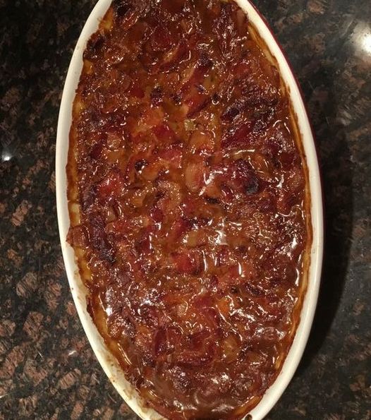 - Place bacon slices evenly over top of beans. Baked uncovered for 60-90 minutes or until bacon is crispy and cooked through. Serve warm.