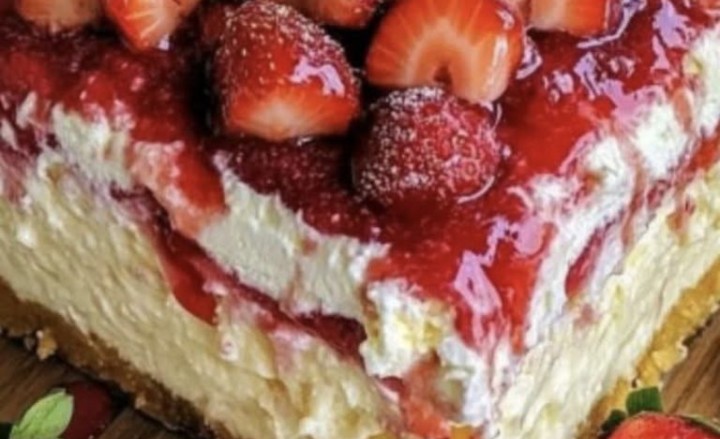 - Add the topping: Pour strawberry jam over the cheesecake, or spread fresh strawberries on top. You can also sprinkle some powdered sugar on top for an extra touch.