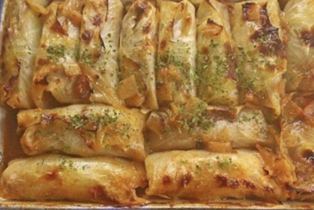 Remove the core from the cabbage. Place it in a large pot, cover with hot water, and boil until the leaves soften.