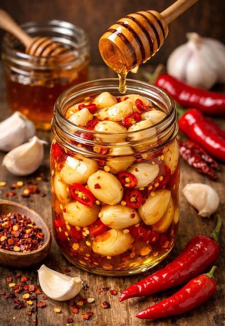 Sweet Heat Honey Pickled Garlic!