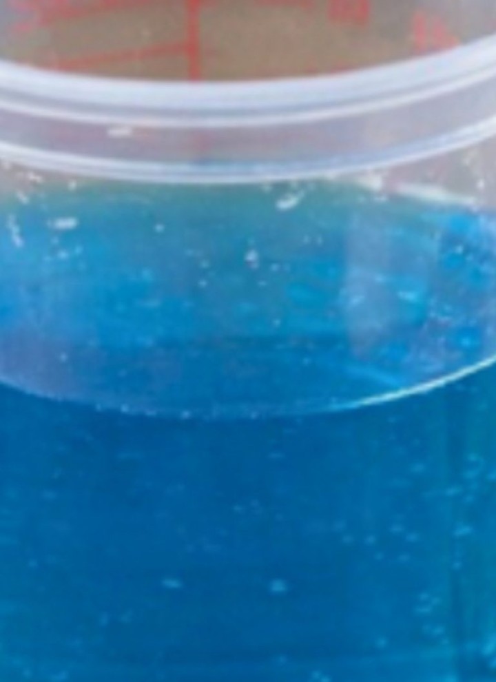Pour the coarse salt into the glass container.