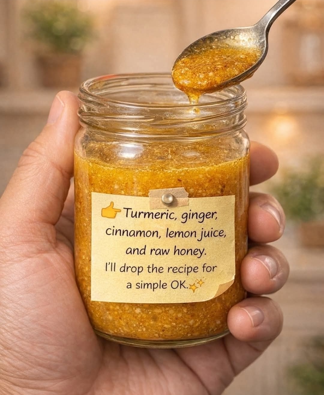 This simple and powerful concoction combines turmeric, ginger, cinnamon, lemon juice, and raw honey – a blend known for its anti-inflammatory and immune-boosting properties. Taking a teaspoon daily will help you feel revitalized and promote overall wellness. It’s a natural remedy you can easily incorporate into your daily routine!