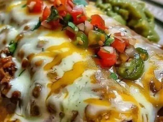 The final product is a large, sumptuous meal, with each burrito covered in sauce and cheese, creating a visually appealing and mouth-watering dish. The blend of textures—from the soft tortilla to the hearty filling and the creamy, melted cheese on top—along with the combination of warm, spicy, and tangy flavors, makes wet burritos a beloved comfort food and a favorite in many households and Mexican eateries.
