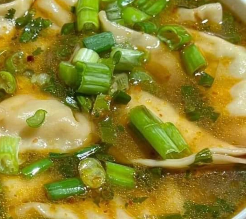 In a medium pot over medium heat add chicken broth, garlic, soy sauce, sesame oil, and green onions. In a separate large pot, bring about 4 quarts of water to a boil. Once the water is boiling, add wontons and cook for 5 minutes. Strain the wontons and add them to the warm broth mixture. Serve warm.